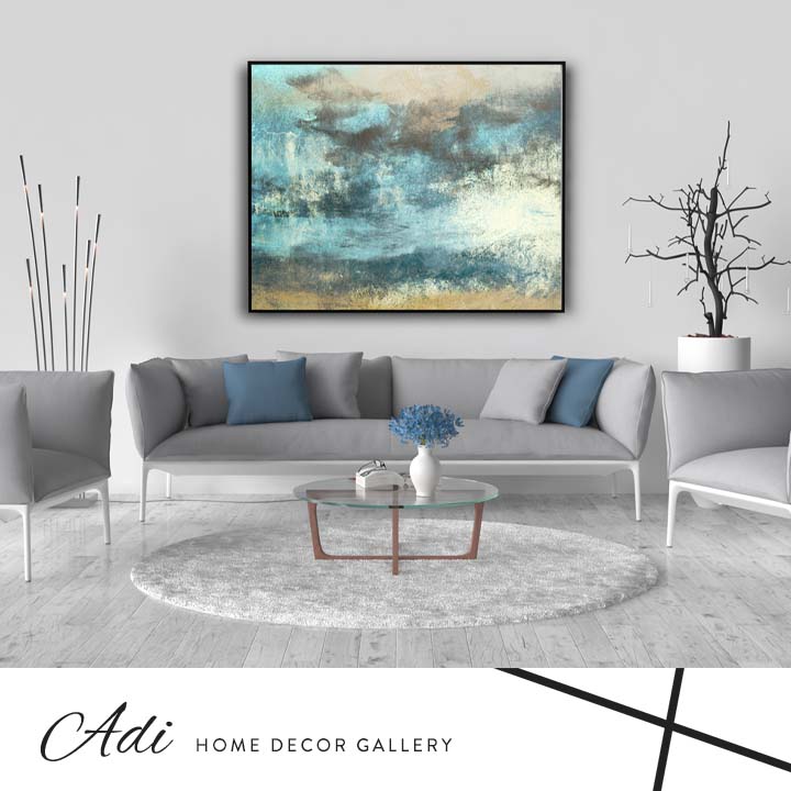 תמונה אבסטרקט מריחות צבע טורכיז כחול זהב