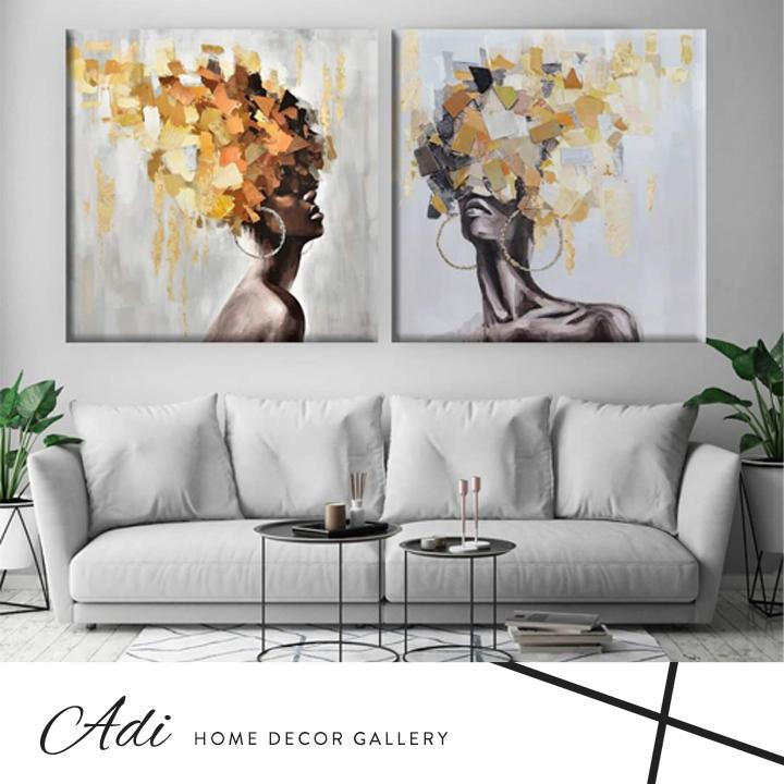זוג תמונות קנבס אבסטרקטיות בגוונים של טרקוטה חמה, שמנת ושחור